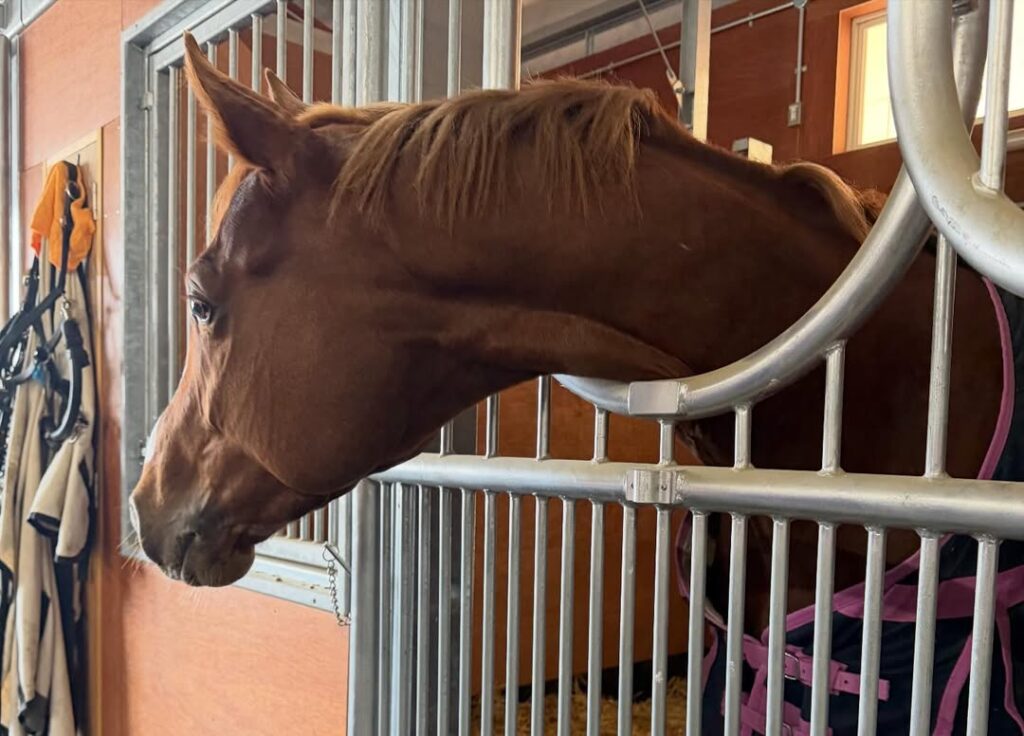 2025年11月に引退した〝エアロロノア〟がJRA福島競馬場に誘導馬として加わったことを案内