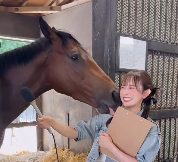 8歳でGⅠ初勝利の「幸せ一杯」な厩舎に〝じゃんけん〟に勝って芸能界入りした競馬予想TVの司会が訪問 GⅠタイトル馬に「こうして見ると綺麗な流星でイケメンですね~」の声