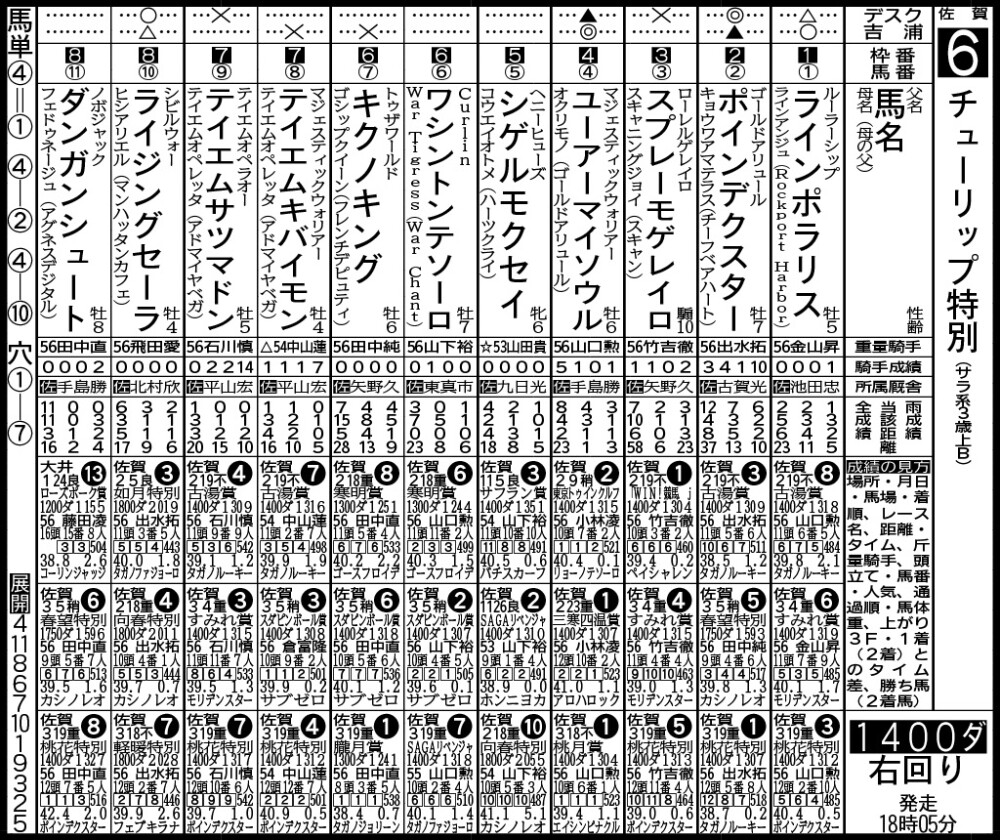 ラインポラリスはじわじわと気配上向き。兵庫C1から転入直後は見せ場をつくれなかったが、移籍3戦目を迎えた前走特別で3着に好走している。佐賀コースにも慣れて末脚に磨きがかかってきた。