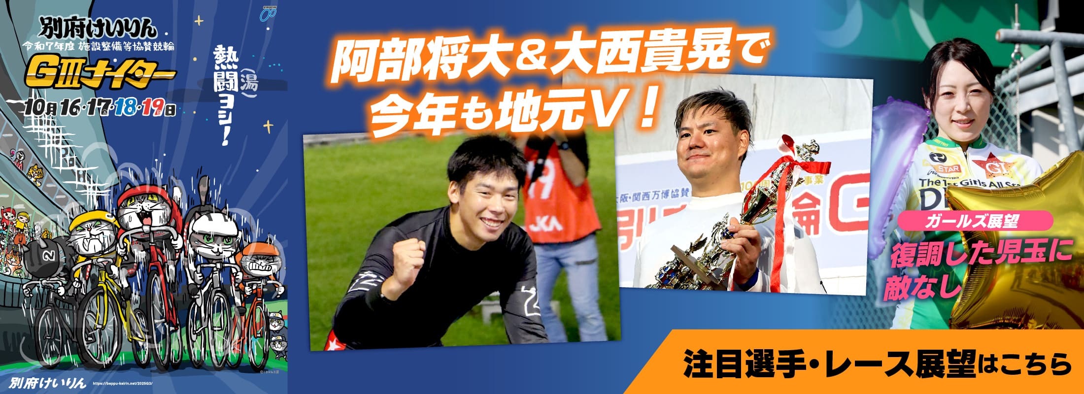 【別府競輪(ナイター)GⅢ施設整備等協賛】阿部将大&大西貴晃で今年も地元V!(注目選手・レース展望)