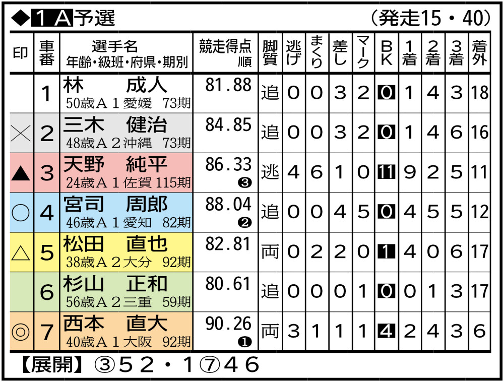 ①西徹 大垣補55。(前回3日目は)瀧本匡平(2着)の3角捲り追い込みを追走で。