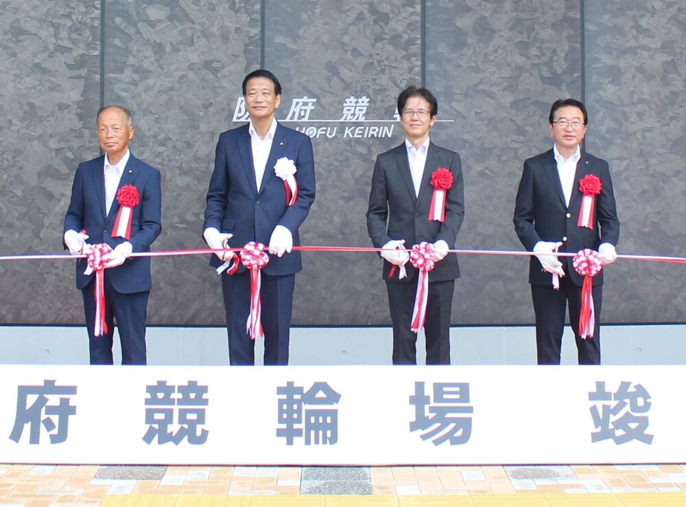 竣工式では池田豊防府市長が「9月22日は75年前の1949年に防府市に競輪場が開設された日です。開設記念の日に新たな競輪場に生まれ変わることができました。11月の開設記念競輪では、6連覇中の地元の清水裕友選手に7連覇の偉業で新しい競輪場に花を添えていただきたいと願っています」とあいさつ。