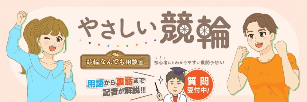 「やさしい競輪」は、競輪は用語が難しいし、予想の仕方もいまいち…という人にもわかりやすく、競技の魅力をお伝えする「西日本スポーツ」オリジナルの新コーナーです。 西日本スポーツの記者とオリジナルキャラクターたちが、展開の読み方や選手の力関係など、予想の流れをわかりやすくひもときます。 |