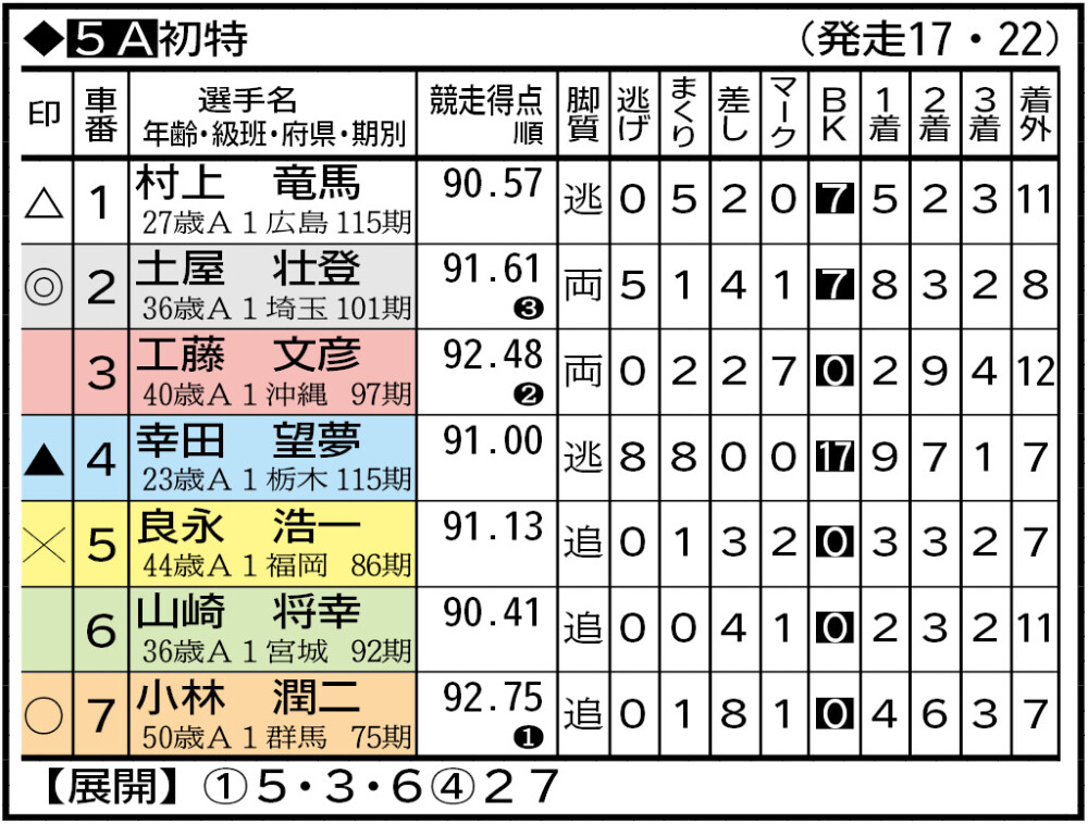 幸田マークの土屋を本命視するのが自然な流れ。さほど積極的ではない村上はライン2車で不利。