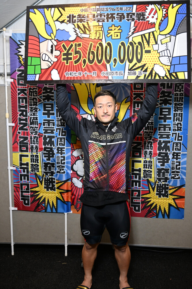 「郡司さんが踏みやめることなく行ってくれたので、誰も来られないと思いました。少し早めだったけど、後ろには地元の2人がいたので行かせてもらいました。神奈川で確定板が決められて良かった」。地元勢で上位を独占し、笑顔で汗を拭った。