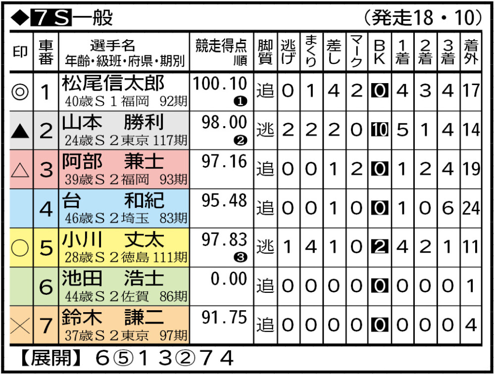 2分戦。自力-番手-3番手の総合力を比較すると小川ラインが優勢で、番手の松尾を本命視する。