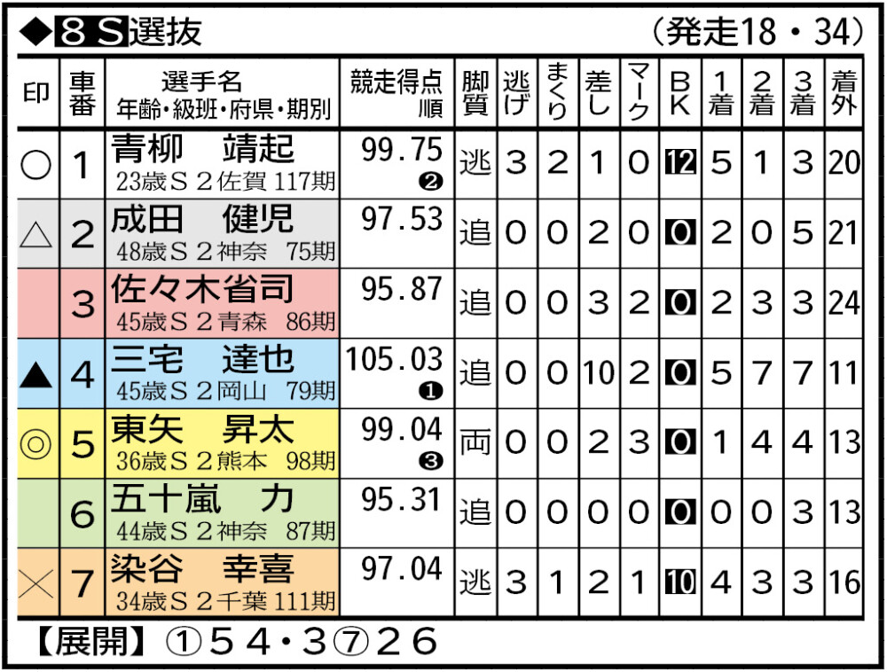 予選の青柳は構えて結局捲れなかった。逃げて挽回を考えているなら東矢に好展開。ただ主導権を逃したのは染谷も同様で成田が穴。