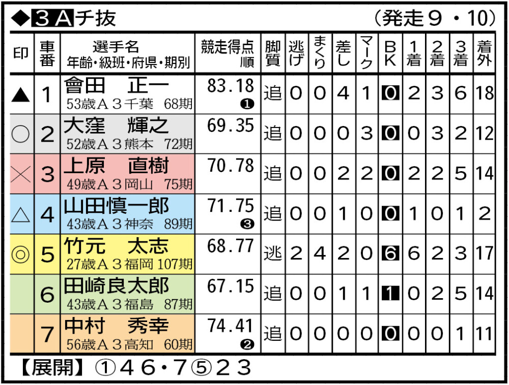 竹元は「自力含めて何でも」だが、機動型一車で中心は揺るがないか。會田「自在に」。