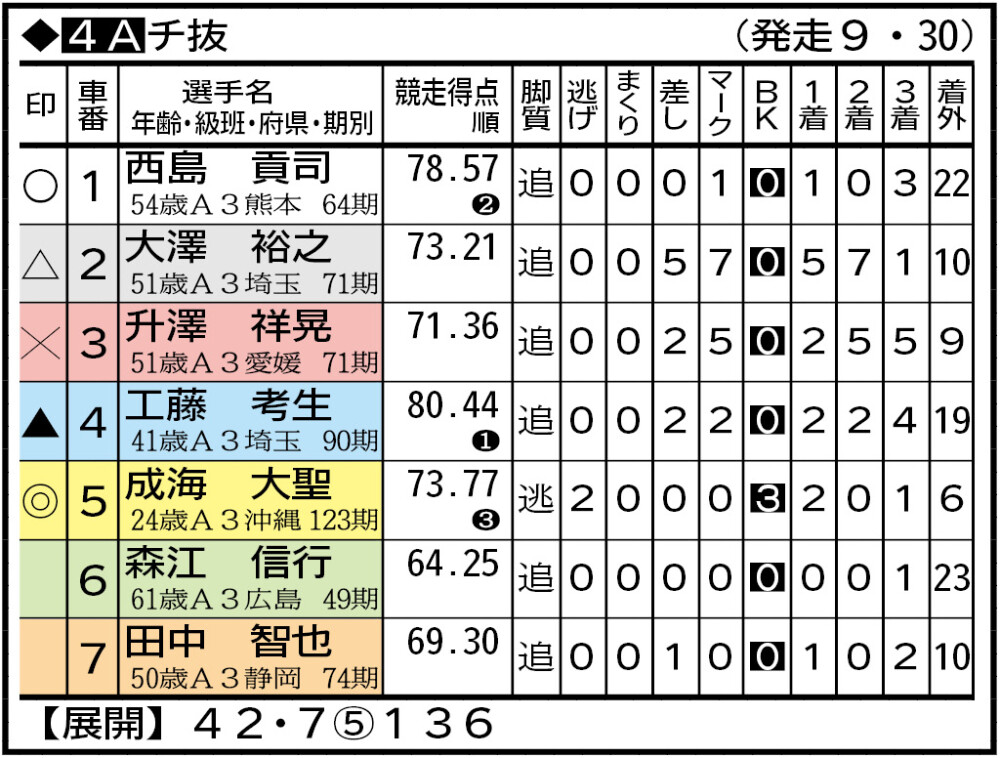 先行して4着に敗れた成海。ここは完全な逃げイチで押し切り有力。工藤「位置決めず」。