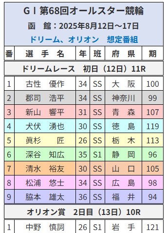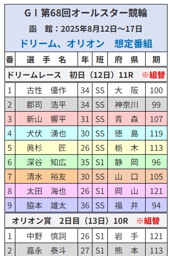 【競輪】GⅠ第68回オールスター概定番組(勝ち上がりトーナメント表)