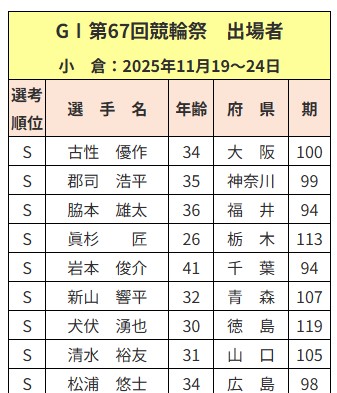 【前橋競輪・GⅠ寬仁親王牌】概定番組(勝ち上がり表)